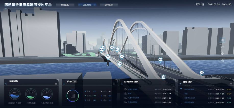 2024 年,該大橋啟動(dòng)監(jiān)測(cè)系統(tǒng)升級(jí),為 80 臺(tái)監(jiān)測(cè)終端(覆蓋主跨、橋墩、引橋)部署 FIFISIM 物聯(lián)三網(wǎng)合一卡,搭建市級(jí)結(jié)構(gòu)監(jiān)測(cè)平臺(tái),實(shí)現(xiàn)全橋?qū)崟r(shí)管控。