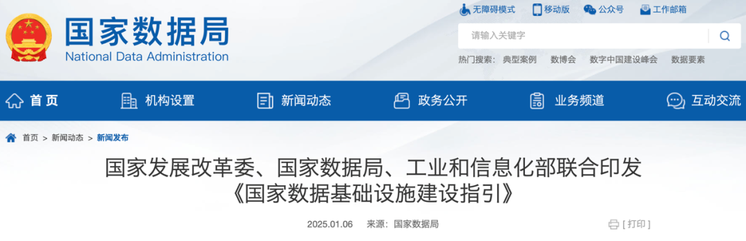 C114訊 1月6日消息(南山)據(jù)國(guó)家數(shù)據(jù)局官網(wǎng),近日,國(guó)家發(fā)展改革委、國(guó)家數(shù)據(jù)局、工業(yè)和信息化部聯(lián)合印發(fā)《國(guó)家數(shù)據(jù)基礎(chǔ)設(shè)施建設(shè)指引》(以下簡(jiǎn)稱(chēng)《指引》)。