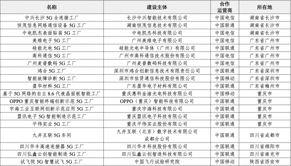 電氣機械和器材制造業(yè)也有多家通信企業(yè)的5G工廠: