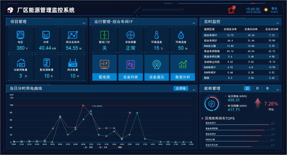 能耗分析可視化:云端平臺(tái)生成能耗報(bào)表(日?qǐng)?bào) / 周報(bào) / 月報(bào))、能耗熱力圖(車間能耗分布)、設(shè)備能耗排行榜,支持按能源類型、時(shí)間段、車間維度查詢,能源管理員可直觀識(shí)別節(jié)能空間(如某生產(chǎn)線能耗是同類線的 1.2 倍)。